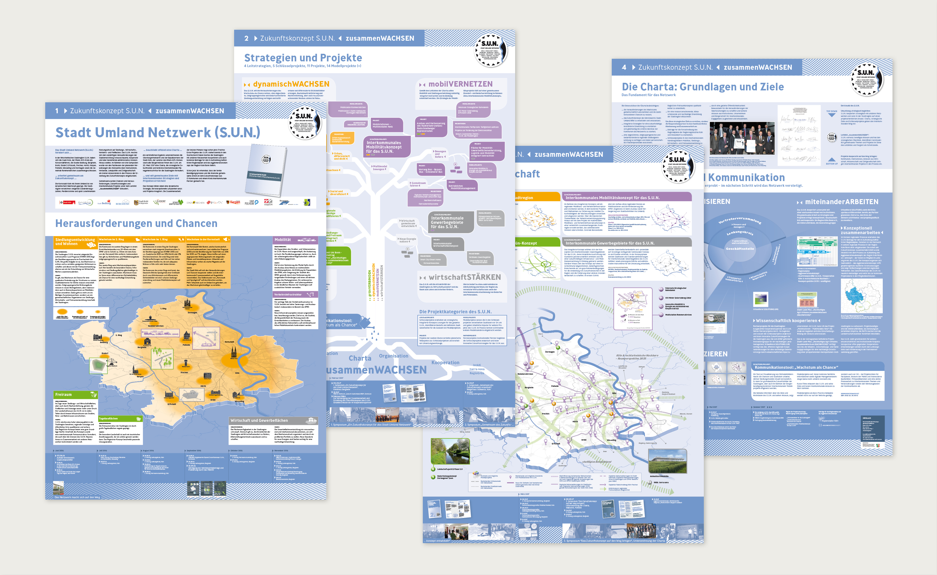 Der Gründungsprozess war gleichzeitig Teil des Wettbewerbs „StadtUmland.NRW“, den das Land NRW zur Stärkung der Zusammenarbeit von Großstädten mit ihren Umlandkommunen ausgelobt hat. In der zweiten Wettbewerbsphase wurde das Zukunftskonzept von Jung Stadtkonzepte moderiert, in einem integrierten Beteiligungsprozess fachlich begleitet und als räumlicher Wettbewerbsbeitrag auf den Punkt gebracht. Mit einem umfangreichen Projekdesign hat BWG den Prozess begleitet und abschliessend zusammengefasst. Die Jury würdigte final das S.U.N. (insgesamt drei von acht Beiträge) als Projekt mit Vorbildcharakter für NRW, das im Gnazen innovativ und integriert angelegt ist.